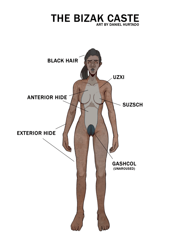 The ‘Bizak Caste’ makes up the most significant chunk of Femarctic Society. Bizaki are more technically inclined, tolerant of simple repetitive processes, and capable of dealing with high stress levels; encoded in their DNA is the drive to labor.
